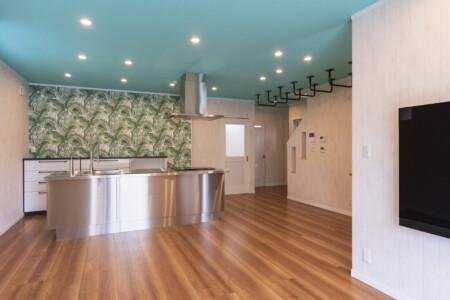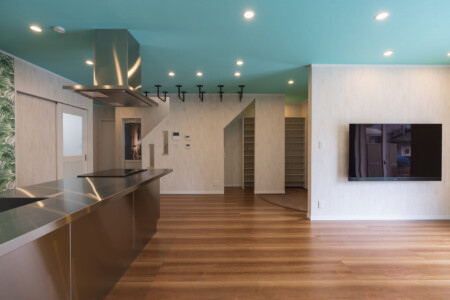 「車や音楽が趣味で、好きなものに囲まれて過ごしたい」「帰るたびにリゾートホテルのようなワクワクを感じ、非日常を味わいたい」という施主様の憧れをこれでもかと詰め込んだ、見たことないこだわりたっぷりの注文住宅です。