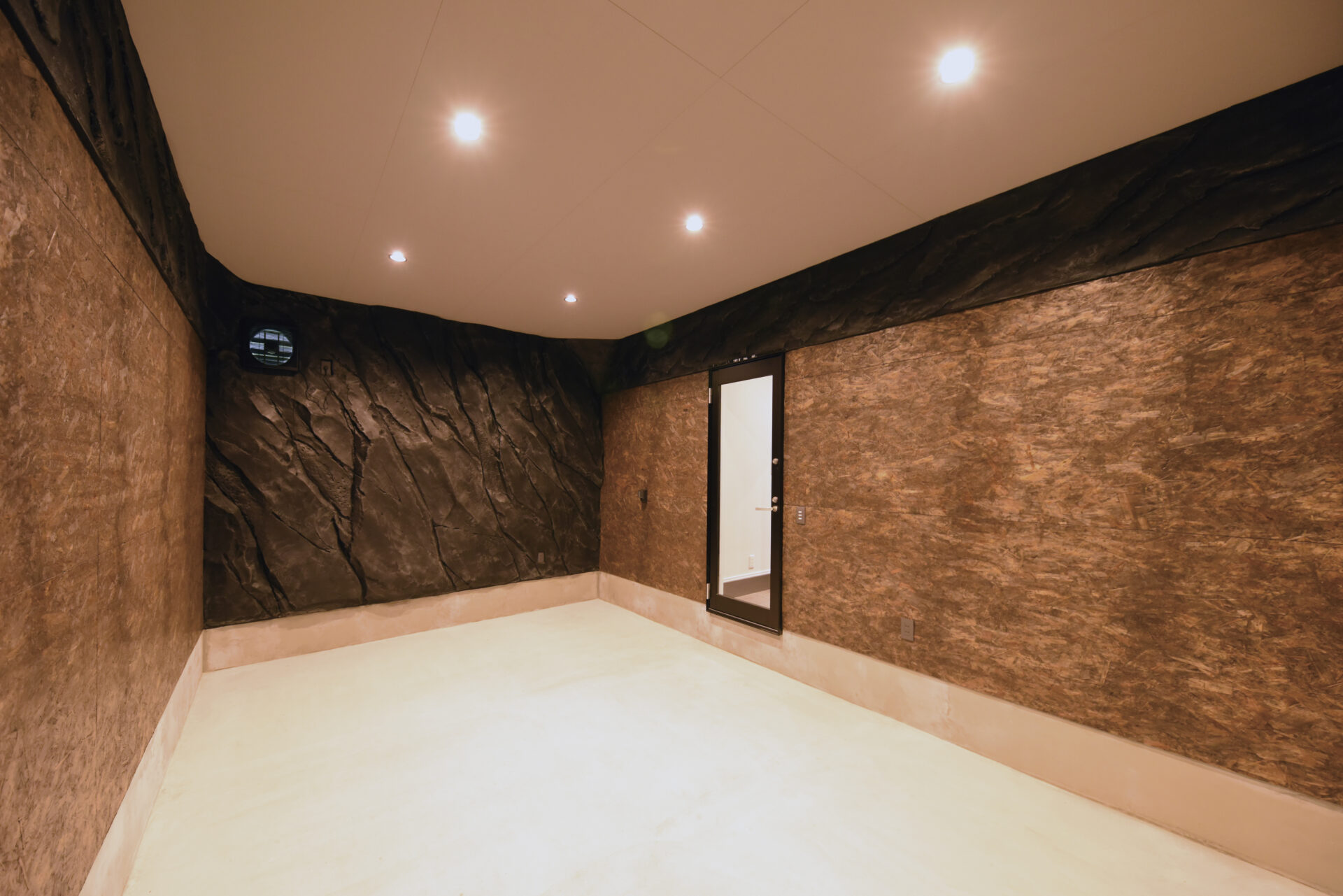 シャッターを上げたその瞬間、そこに広がるのは岩がそびえる「異空間ガレージ」!
