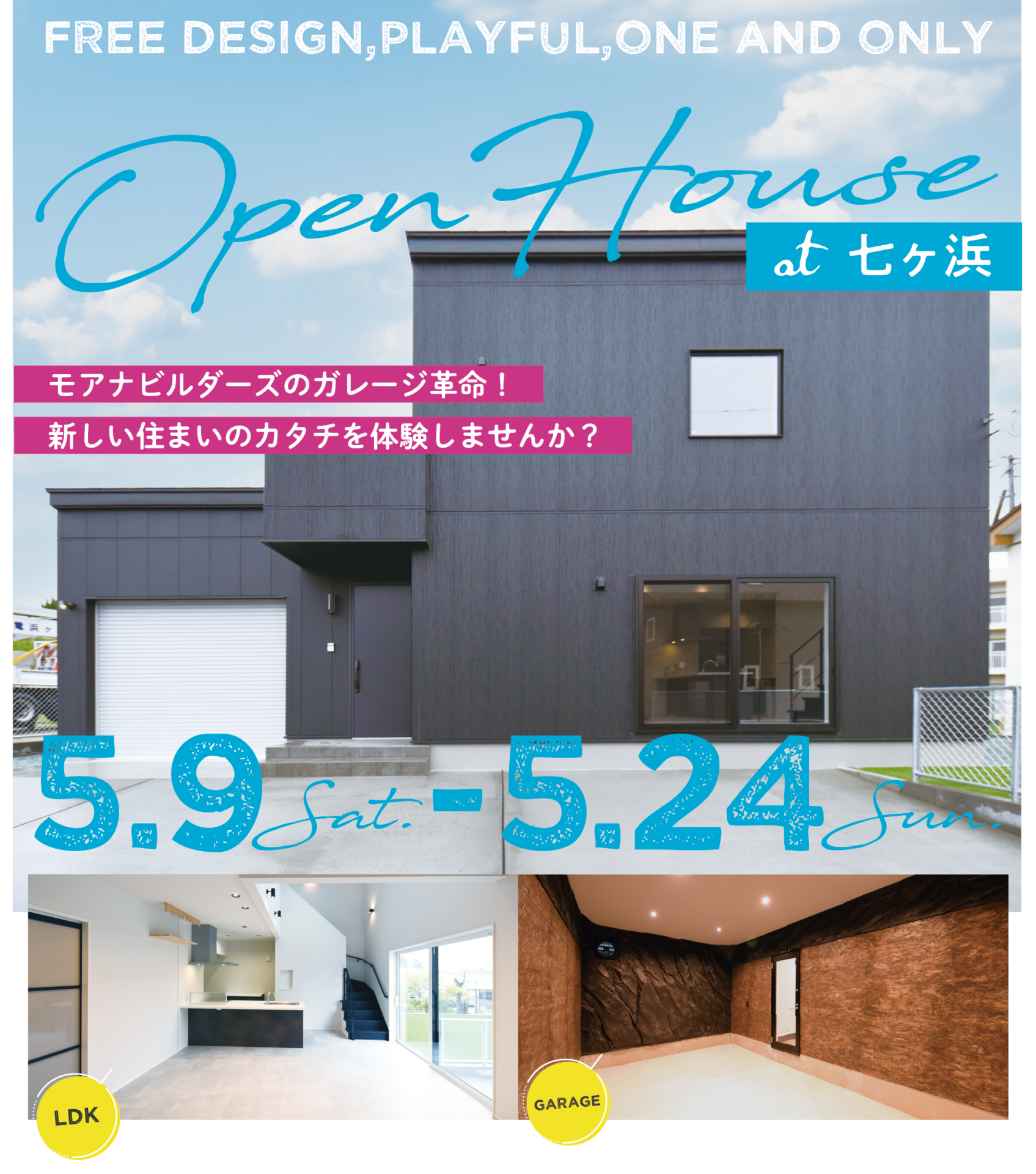 七ヶ浜町にモアナビルダーズ渾身の新築ガレージハウスが完成いたします!